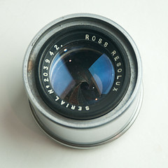 It looks like an enlarger lens, I have a Ross RossStar 9cm 4.5 lens for my enlarger.....never used it mind but I'm assured its a sweet thing:shrug: