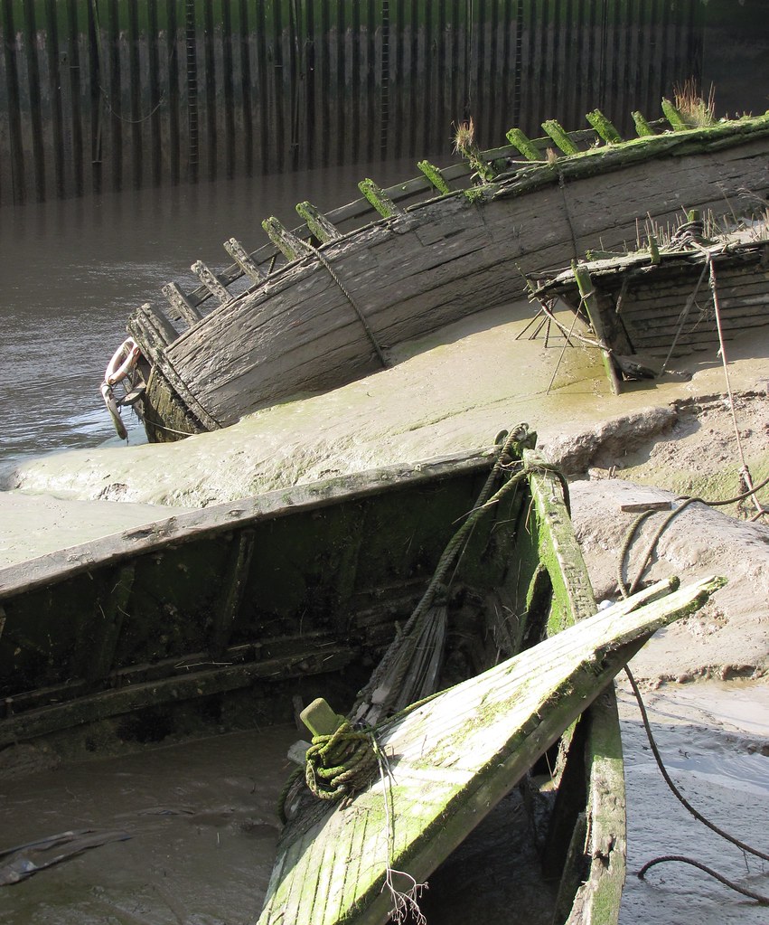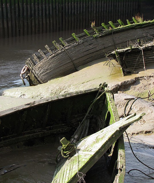 It was shot with a Canon SX120 compact camera and I have cropped a small strip off the top to cut out the quayside top, white van etc. My biggest gripe with the image is the over-exposure on the loose bit of wood (prow deck, I think) at the front of the shot. I use Gimp 2.6; I tried some 'burn' but the result looked awful (so I binned it).