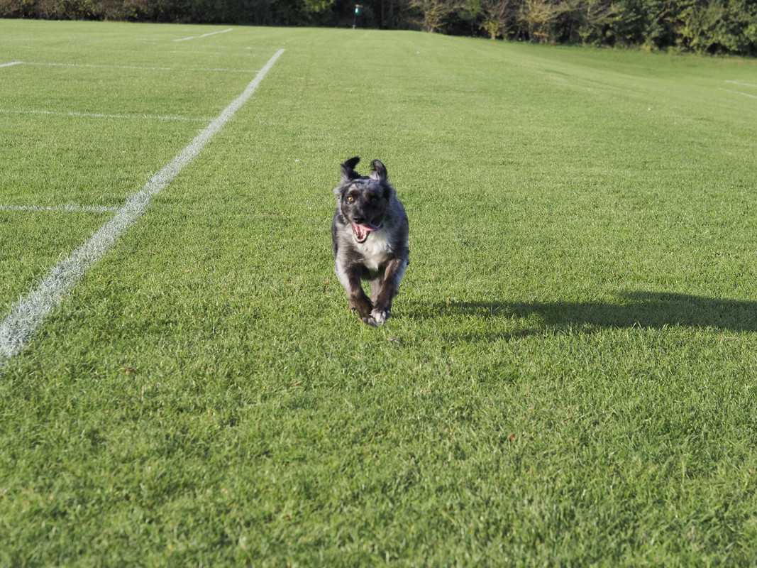Try c.af … high frame rate .. sequential high speed .. all focus points … there’s something in the menu that utilises the nearest focus points but I can’t remember what it’s called , I certainly had lots of success with birds flying towards me so it does work . Use a.v rather than shutter priority with a minimal speed of 1/1600 sec ,use the lens wide open auto iso as this reduces the chance of background interference.. …do not ever use tracking it doesn’t work .. a.f sensitively at +2 .. it does eventually fall into place but you have to forget what worked on other brands .. some peeps use BBF but I prefer the shutter button. It’s a great camera but takes time to gel with it . edit woke up now .. use all points focussing and invoke cluster focus .. google how to install it as not had a mkiii for awhile !!Im learning this camera as it’s new to me. If I wanted a photo of my dog running I would normally use my Sony 6500. But I want to learn this em1 mk3. I had the 45mm lens on.