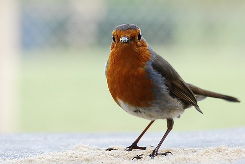 The Robin sat on the fence for ages but eventually gave in and came on the new bird feeder. I know the picture is far from perfect but I've made a start! I welcome C&C.